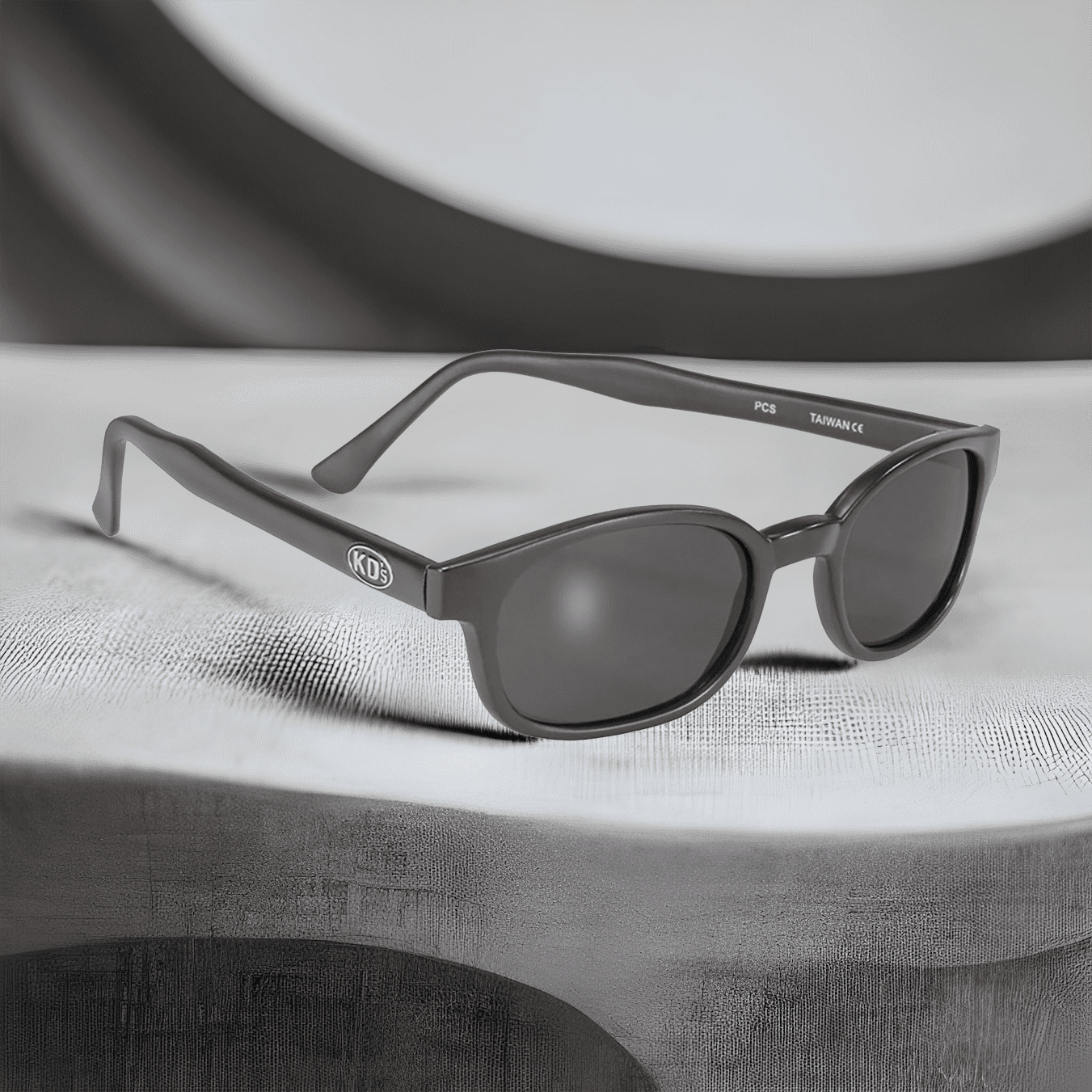 Το λογότυπο της KD χαραγμένο σε ένα ζευγάρι γυαλιά ηλίου στο σκοτάδι, αναδεικνύοντας την αυθεντικότητα και την ποιότητα της μάρκας.